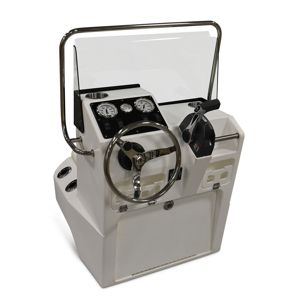 The RPD 1719 Console blank or shell is a full size console designed for boats from 16' to 21' and has five molded in storage recesses. It is ready to accept flush mount rod holders (30 degree) on either side of the forward seating area. It has a molded in area for a binnacle control as well as an area for a dash panel and the helm.
